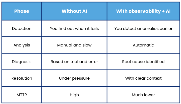 The combination of advanced observability and artificial intelligence improves speed, accuracy, and the ability to respond to incidents.
